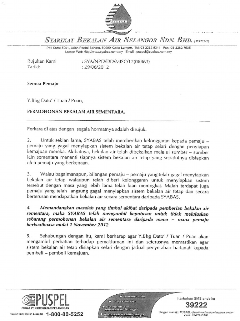Surat Kiriman Rasmi Gangguan Bekalan Air Pdf